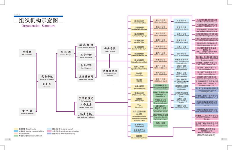 集團總部機關(guān)部室名稱:綜合辦公室,市場開發(fā)部,商務(wù)管理部,工程管理部,安全管理部,組織人事部,技術(shù)質(zhì)量部,法律合規(guī)部,財務(wù)部,審計部,事業(yè)發(fā)展部,黨委辦公室,宣傳部,紀委(監(jiān)督、巡查)辦公室,工會